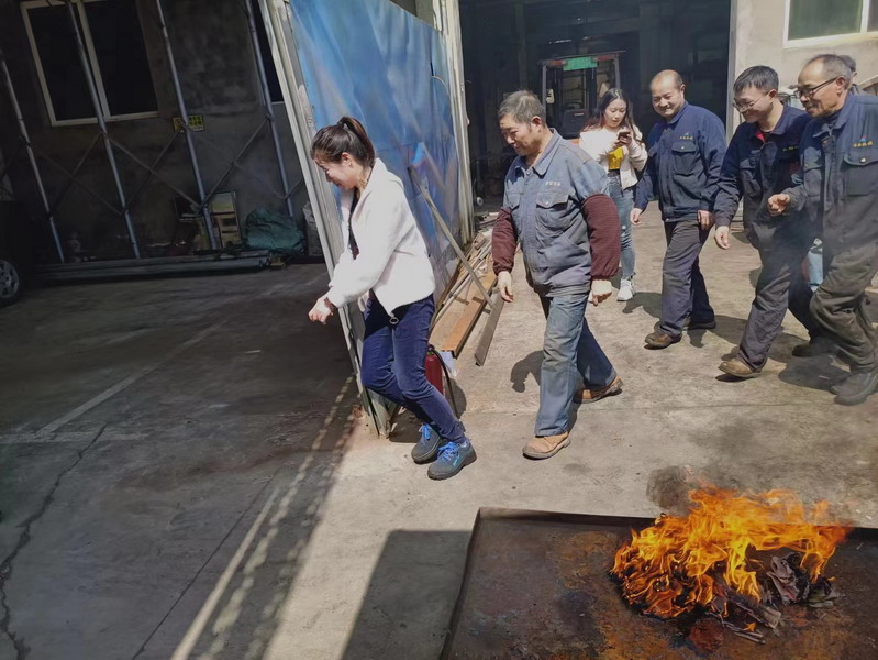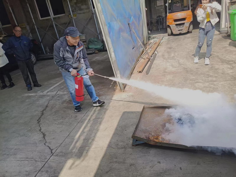 培訓中,總經(jīng)理沈揚就消防安全管理,火災的形成發(fā)展及滅火對策,如何報警、火災初期撲救、人員安全疏散及逃生自救等常識進行講解,并對滅火器的使用、維護、保養(yǎng)及注意事項進行現(xiàn)場培訓。培訓中,員工們認真聽講,隨后,車間施主任與安全員小范組織參會人員進行火災疏散和滅火演練,有效提升了大家的火災防患能力,組織火災初期撲救能力和疏散逃生自救能力。